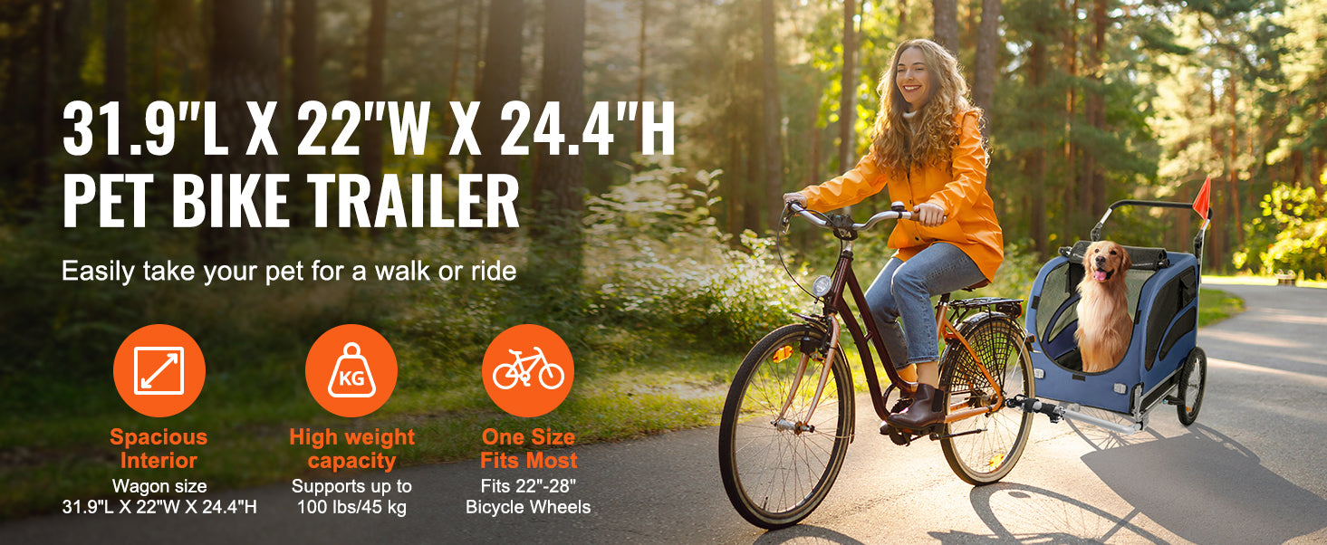 SucceBuy 100 lbs Dog Bike Trailer 2-in-1 Pet Stroller Cart Bicycle Carrier with Wheels Coupler Reflectors Flag for Dogs Travel