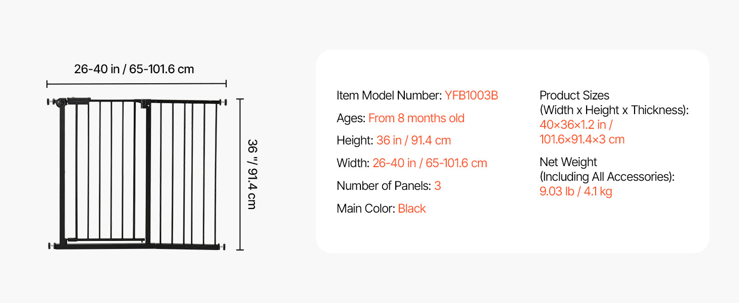 SucceBuy Baby Gate 28/30/36 Inches High Dog Gate Easy Step Walk Thru Child Pet Security Pressure Mount Kit Wall Cups Doorways